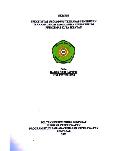 Savitri, Kadek Sari (2023) EFEKTIVITAS GROUNDING TERHADAP PENURUNAN TEKANAN DARAH PADA LANSIA HIPERTENSI DI PUSKESMAS KUTA SELATAN. Diploma thesis, Poltekkes Kemenkes Denpasar Jurusan Keperawatan 2023.