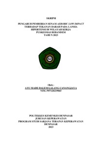 Canangjaya, Ayu Made Dalem Galang (2023) PENGARUH PEMBERIAN SENAM AEROBIC LOW IMPACT TERHADAP TEKANAN DARAH PADA LANSIA HIPERTENSI DI WILAYAH KERJA PUSKESMAS BEBANDEM TAHUN 2023. Diploma thesis, Poltekkes Kemenkes Denpasar Jurusan Keperawatan 2023.