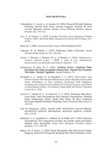 | Uncontrolled Keywords: | GAMBARAN KADAR HEMOGLOBIN PADA PETANI PENGGUNA PESTISIDA DI DESA GAYASAN A KECAMATAN JENGGAWAH KABUPATEN JEMBER ABSTRAK Latar belakang: Pestisida merupakan zat kimia yang dipakai untuk membunuh hama. Terpaparnya tubuh dari pestisida akan berdampak sangat toksik atau bahkan mengakibatkan kematian. Hal ini terjadi karena terdapat kandungan sulfur yang tinggi dalam pestisida yang dapat menimbulkan ikatan sulfhemoglobin, dimana sulfhemoglobin merupakan bentuk hemoglobin yang berikatan dengan atom sulfur didalamnya sehingga pada sel darah merah dapat menyebabkan penurunan hemoglobin sehingga terjadi anemia hemolitik. Tujuan: Tujuan pada penelitian ini yang pertama untuk mengidentifikasi penggunaan APD dan lama penggunaan pestisida yang ke dua untuk mengukur hasil pemeriksaan kadar hemoglobin pada petani di Desa Gayasan A Kecamatan Jenggawah Kabupaten Jember bedasarkan karakteristik kelompok usia, lama penggunaan pestisida, penggunaan APD. Metode: Jenis penelitian deskriptif yang dilakukan pada bulan Februari 2023 di Desa Gayasan A Kecamatan Jenggawah Kabupaten Jember. Sampel penelitian ini berjumlah 33 orang menggunakan teknik sampling Simpel Rondom Sampling menggunakan metode POCT dengan alat Easy Touch GCU. Hasil: Hasil penelitian ini menunjukkan kadar hemoglobin normal sebanyak 20 orang (60,6%) dan kadar hemoglobin tinggi sebanyak 13 orang (39,4%) Kesimpulan: Kesimpulan pada penelitian ini penelitian ini diketahui sebagian besar (50%) pada kelompok usia 30-39 tahun, dengan kategori masa kerja ≥5 tahun sebanyak (64,3%), dan kategori penggunaan APD tidak lengkap sebanyak (58,1%) . |
