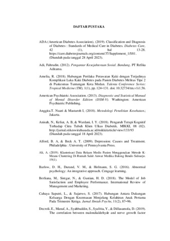 | Uncontrolled Keywords: | diabetes millitus, tingkat depresi, dukungan keluarga |