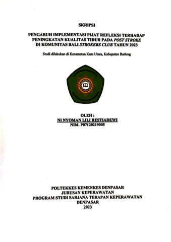 Restiadewi, Ni Nyoman Lili (2023) PENGARUH IMPLEMENTASI PIJAT REFLEKSI TERHADAP PENINGKATAN KUALITAS TIDUR PADA POST STROKE DI KOMUNITAS BALI STROKERS CLUB TAHUN 2023. Diploma thesis, Poltekkes Kemenkes Denpasar Jurusan Keperawatan 2023.