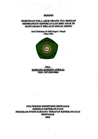 Aprilia, Komang Suhesti (2023) HUBUNGAN POLA ASUH ORANG TUA DENGAN MEMBANGUN KEPERCAYAAN DIRI ANAK DI MASYARAKAT MELALUI SOCIAL MEDIA DI SMP NEGERI 1 BANGLI. Diploma thesis, Poltekkes Kemenkes Denpasar Jurusan Keperawatan 2023.