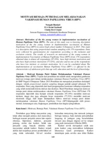| Uncontrolled Keywords: | Kata kunci : Motivasi, Remaja Putri, Vaksinasi Human Papilloma Virus (HPV). |