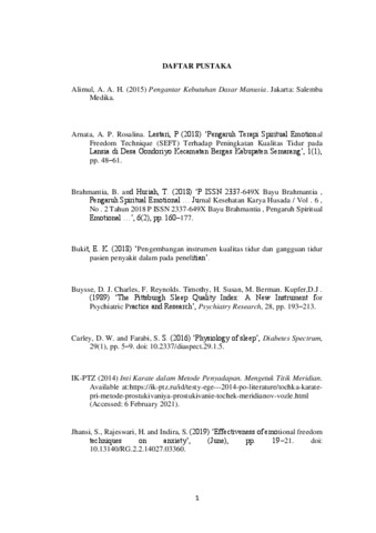 Utami, Gusti Ayu Septian Maya Dwi (2021) PENGARUH EMOTIONAL FREEDOM TECHNIQUE TERHADAP KUALITAS TIDUR PASIEN HIPERTENSI DI WILAYAH KERJA UPT PUSKESMAS KUTA UTARA TAHUN 2021. Diploma thesis, Jurusan Keperawatan 2021.