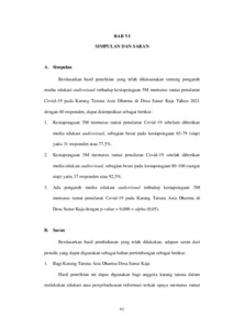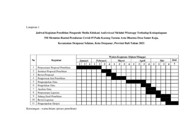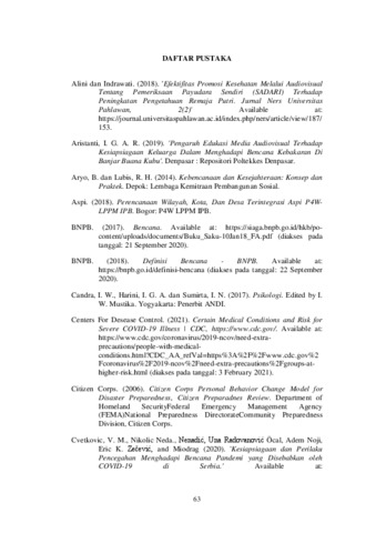 The Influence Of Audiovisual Education Against Preparedness 5M To Break The Chain Of Transmission Covid-19 On Karang Taruna Asta Dharma ABSTRACT The Covid-19 pandemic is a non-natural disaster that is currently hitting the world, until now there is still an increase in the incidence of Covid-19. To anticipate this, one effort is made to increase individual preparedness. This study aims to determine the effect of audiovisual media education through whatsapp on 5M preparedness to break the chain of transmission of Covid-19 at Karang Taruna Asta Dharma. This type of research is a quantitative pre-experimental design with one group pre-post design using simple random sampling with 40 respondents. The results showed that the preparedness before being given educational media was in the preparedness index 65-79 (ready), are 31 respondents (77.5%). Preparedness after being given educational media at an index of 80-100 (very ready) are 37 (92.5%). The results of the Wilcoxon statistical test were p value = 0.000 less than alpha (0.05) which means that H0 was rejected, it was concluded that there was an effect of audiovisual education media through whatsapp on 5M preparedness to break the chain of Covid-19 transmission at Karang Taruna Asta Dharma, Sanur Kaja Village, 2021. It is recommended that audiovisual education media be used for members of Karang Taruna in conducting education. Keywords: Covid-19, Preparedness, Audiovisual