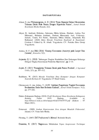 Gayatri, Putu Mitha Eka (2021) PENGARUH TAPAS ACUPRESSURE TECHNIQUE TERHADAP TINGKAT KECEMASAN PADA PASIEN HIPERTENSI DI WILAYAH KERJA UPT PUSKESMAS KUTA UTARA TAHUN 2021. Diploma thesis, Jurusan Keperawatan 2021.