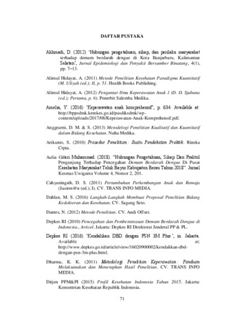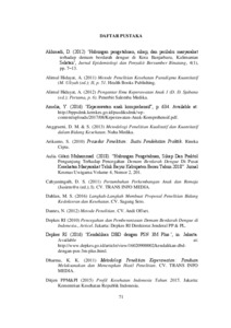 THE RELATION BETWEEN HEALTH BEHAVIOR AND AND THE NUMBER OF DENGUE FEVER INFECTED CHILDREN IN SD N 6 BANYUNING, BULELENG REGENCY, IN 2021 ABSTRACT SD Negeri 6 Banyuning is one of an elementary school in Buleleng Regency whose health behavior needs attention. The results of the initial interviews showed the students rarely cleaned and sprinkled abate powder in water reservoirs and there were several students who infected dengue at school. This research is a quantitative study, the design of this study used analytical research with a cross sectional approach. The population in this study were elementary school students from fourth to sixth-grade in SD Negeri 6 Banyuning, the total is 74 students. The sampling method used probability sampling with simple random sampling technique. The number of samples was 62 people. Hypothesis testing used the Spearman rank correlation statistical test (α = 0.05). The research instrument used a health behavior questionnaire and Dengue Hemorrhagic Fever (DHF) symptom questionnaire. The results showed the value of r -0.515 and p value of 0.000 (α = 0.05), which means that there is a moderate, negative, and significant relationship between health behavior and the incidence of dengue hemorrhagic fever of children at SD Negeri 6 Banyuning, Buleleng Regency in 2021. It is hoped that teachers, students and education staff at SD Negeri 6 Banyuning play an active role in the eradication of dengue by eradicating the Aedes aegypti mosquito nest by conducting 3M. Keywords: Health Behavior, Dengue Hemorrhagic Fever