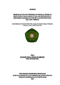 Wardani, Ni Made Nola Silpia (2021) HUBUNGAN STATUS PEKERJAAN DENGAN TINGKAT KEPATUHAN MASYARAKAT DALAM MENERAPKAN PROTOKOL KESEHATAN 3M DI LUAR RUMAH PADA ERA NEW NORMAL. Diploma thesis, Poltekkes Kemenkes Denpasar Jurusan Keperawatan 2021.