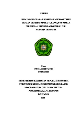 Suryanadi, I Nyoman (2021) HUBUNGAN RIWAYAT KONSUMSI MIKRONUTRIEN DENGAN DENSITAS MASA TULANG JURU MASAK PEREMPUAN DI INSTALASI GIZI RSU PURI RAHARJA DENPASAR. Diploma thesis, Jurusan Gizi Poltekkes Denpasar 2021.
