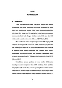 ABSTRACT THE CORRELATION BETWEEN RECORD OF MICRONUTRIENT CONSUMPTION WITH BONE MASS DENSITY ON FEMALE COOKERS IN NUTRITION INSTALLATION OF PURI RAHARJA DENPASAR HOSPITAL The cookers has a fairly high activity, preparing food to eat and doing more standing. Lack of calcium consumption can be a factor in osteopenia and osteoporosis. Likewise, the lack of phosphorus and vitamin D consumption can be another factor causing osteopenia (decreased bone density) and osteoporosis. The purpose of this study was to determine the relationship between consumption of micronutrients (calcium, phosphorus and vitamin D) with bone mass density of female cookers. The method used is interviews, questionnaires, micronutrient consumption data using the Semi Quantitative Food Questionnaire form. Measurement of bone mass density using Densitometry-USG. The research design was exploratory with a cross sectional design. The population in this study were female cookers at the nutrition installation of RSU Puri Raharja Denpasar, with a sample of 20 people. The data is processed and tabulated with software (SPSS, nutri 2008), then analyzed. The results shows that record of moderate category consumption of calcium was 75%, over-consumption was 5% and less category was 20%. Record of phosphor in over-consumption was 25%, moderate category was 60% and less category was 15%. Record of vitamin D consumption in the over-consumption category was 5%, moderate was 75% and less category was 20%. The results of data analysis using Spearman correlation showed that there was significant relationship between micronutrient consumption and the bone mass density of the cookers p= 0,001 (calsium dan vitamin D) dan p= 0,017 (phosphor) (p<0,05). Keywords: micronutrients, bone mass density, female cookers
